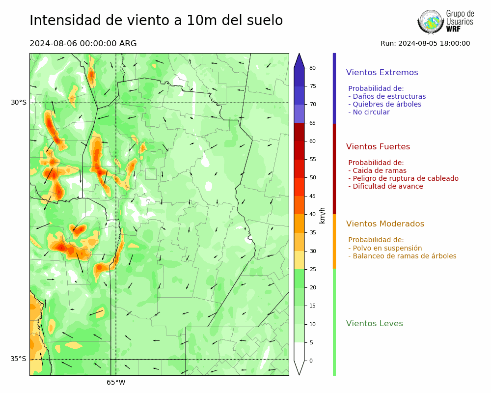 • Intensidad máxima: 12.54 km/h (06/08/2024 12hs.)