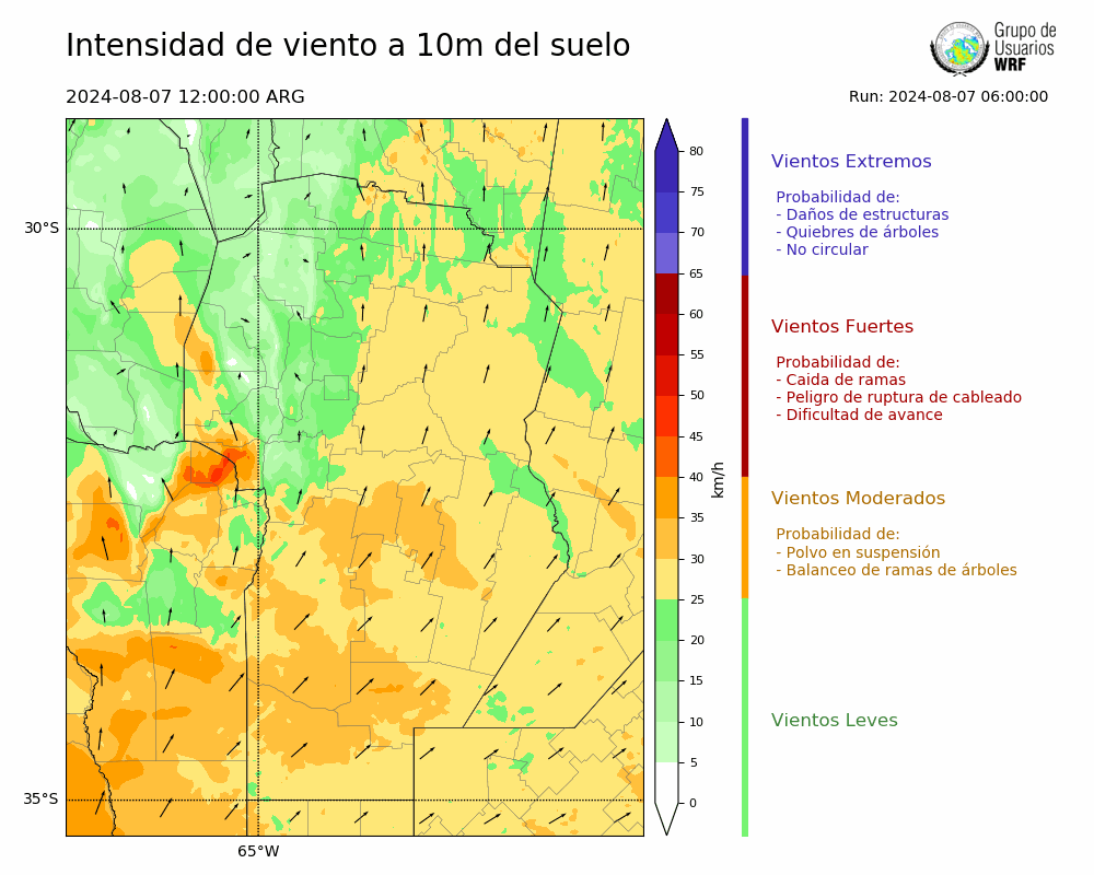 • Intensidad máxima: 20.83 km/h (07/08/2024 12hs.)
