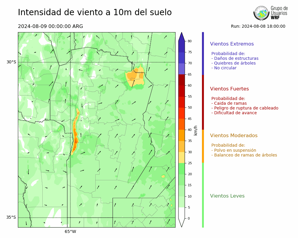• Intensidad máxima: 18.44 km/h (09/08/2024 06hs.)
