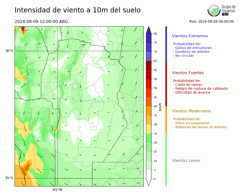 • Intensidad máxima: 24.70 km/h (09/08/2024 23hs.)