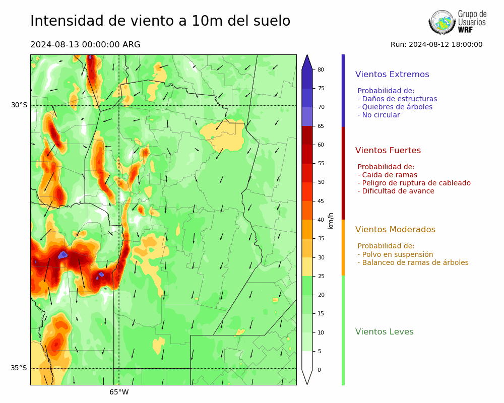 • Intensidad máxima: 47.96 km/h (13/08/2024 05hs.)