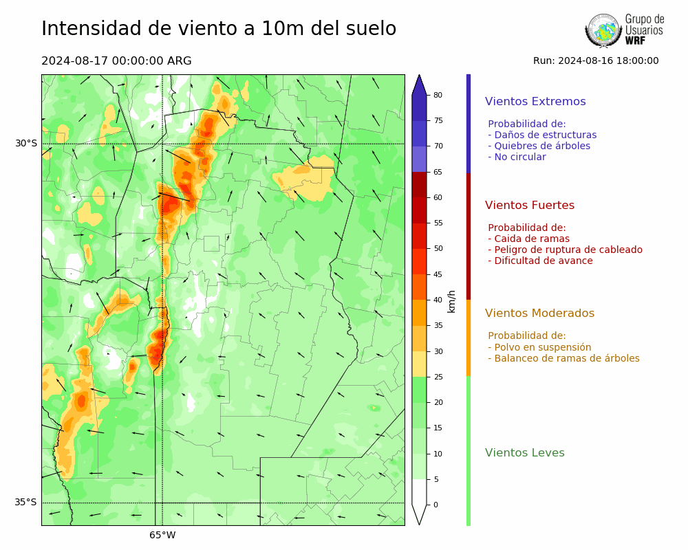 • Intensidad máxima: 15.35 km/h (19/08/2024 05hs.)