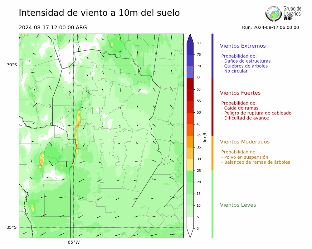 • Intensidad máxima: 17.77 km/h (17/08/2024 18hs.)