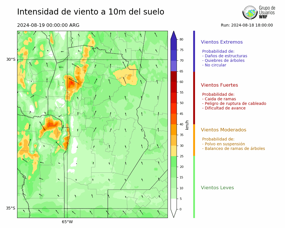 • Intensidad máxima: 18.22 km/h (19/08/2024 01hs.)