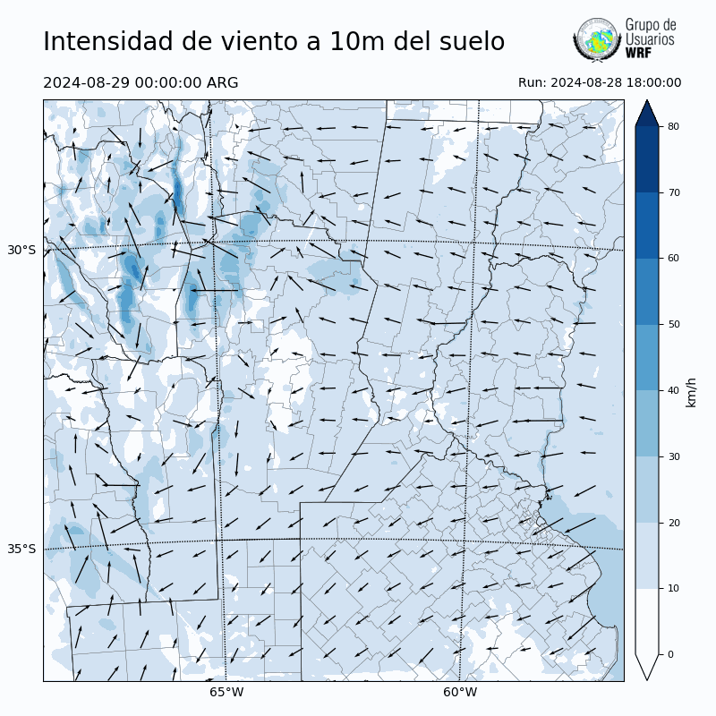 • Intensidad máxima: 10.69 km/h (29/08/2024 11hs.)