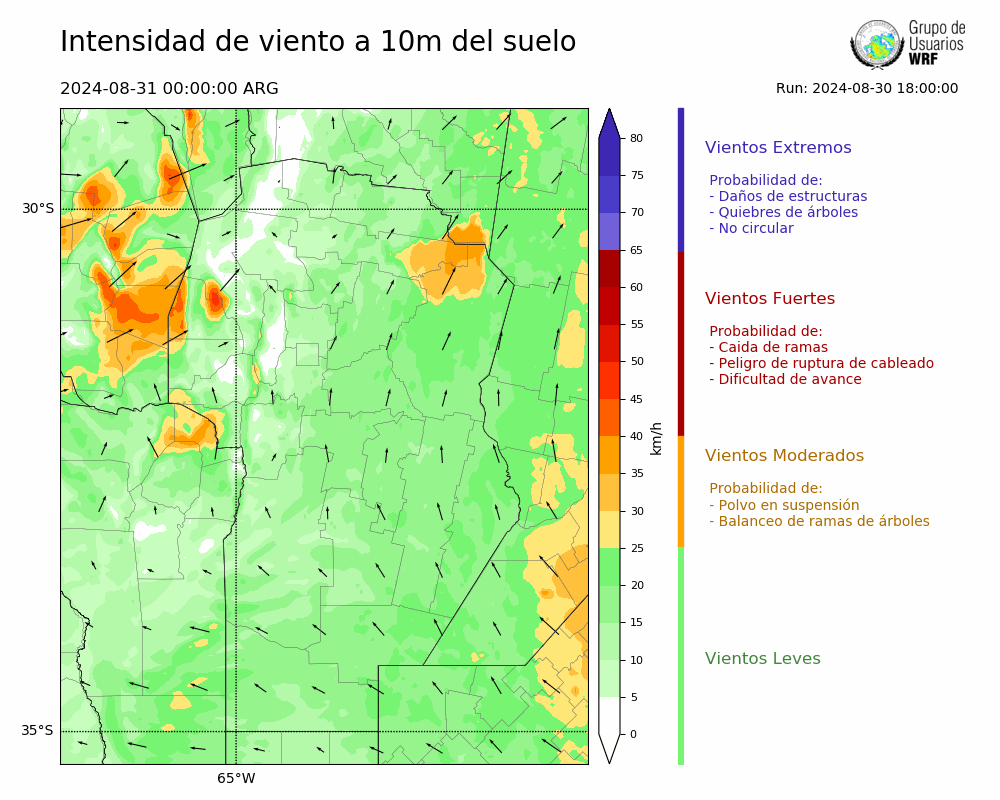 • Intensidad máxima: 15.63 km/h (31/08/2024 02hs.)