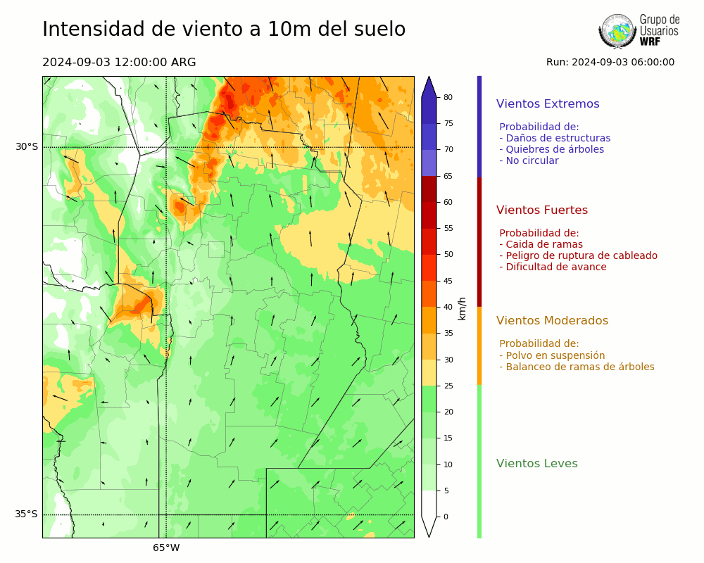 • Intensidad máxima: 17.62 km/h (03/09/2024 17hs.)