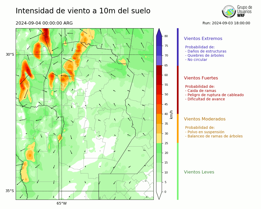• Intensidad máxima: 12.86 km/h (04/09/2024 11hs.)