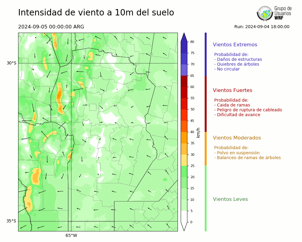 • Intensidad máxima: 27.98 km/h (05/09/2024 10hs.)