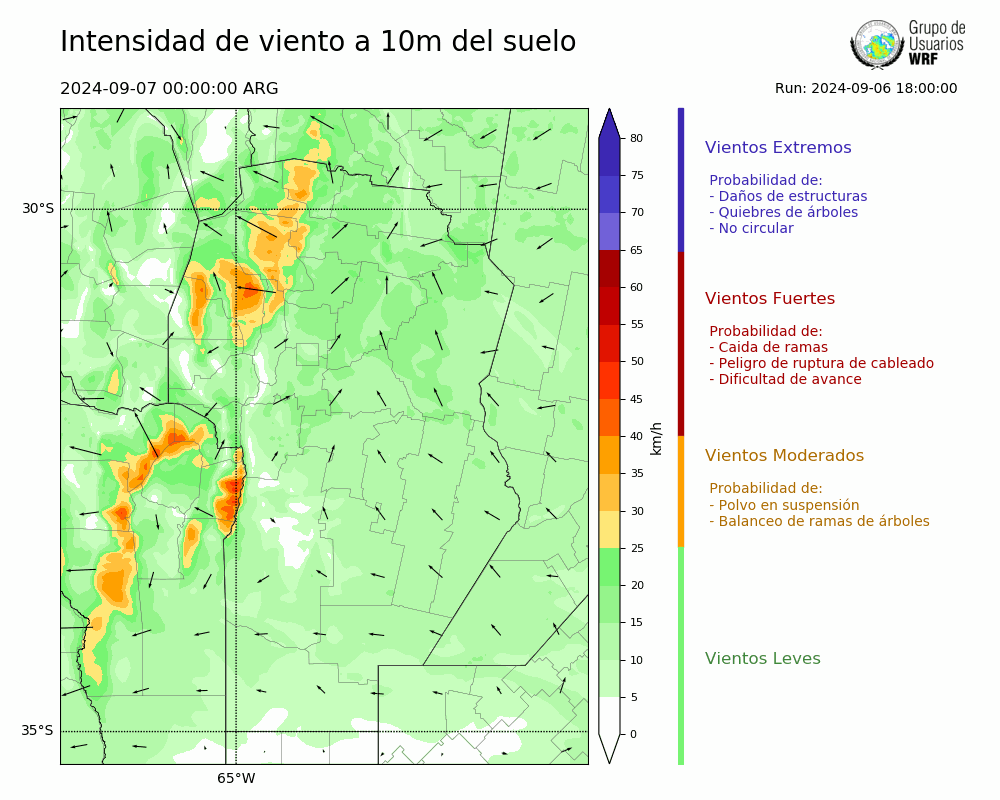 • Intensidad máxima: 14.75 km/h (07/09/2024 04hs.)