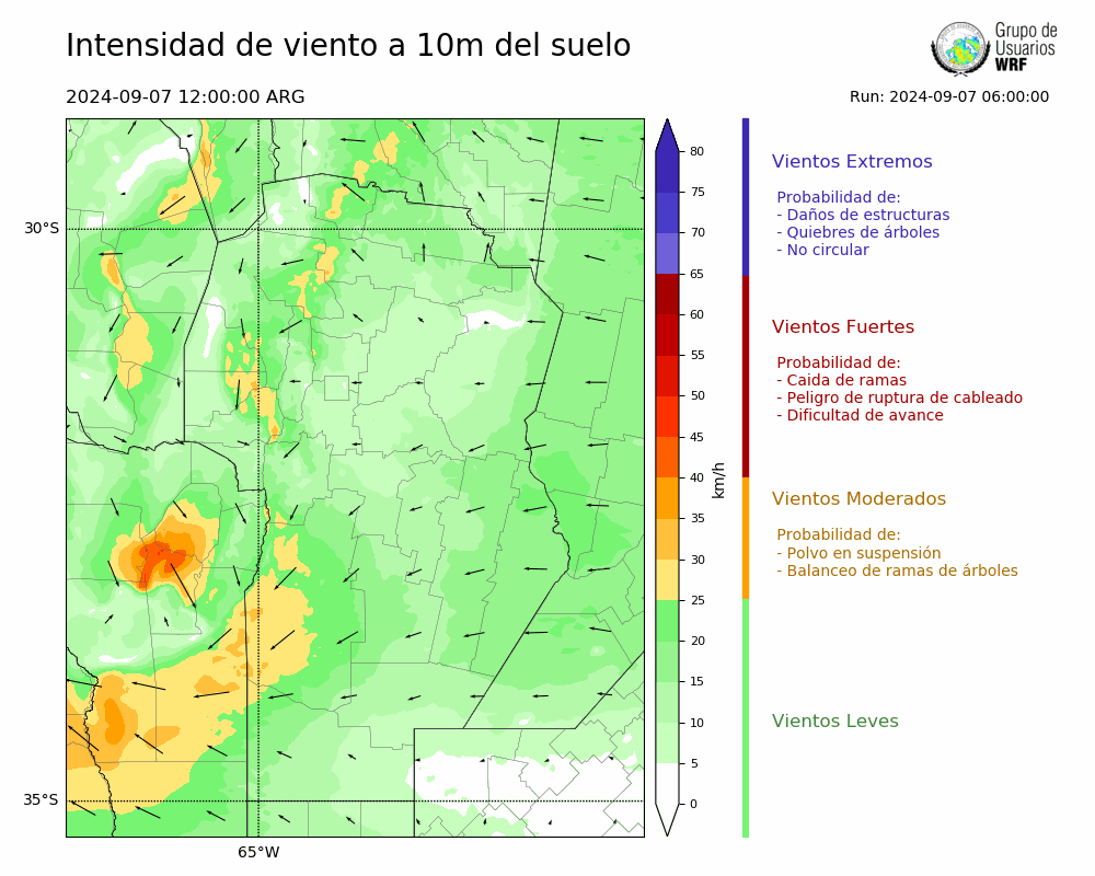 • Intensidad máxima: 22.04 km/h (07/09/2024 17hs.)