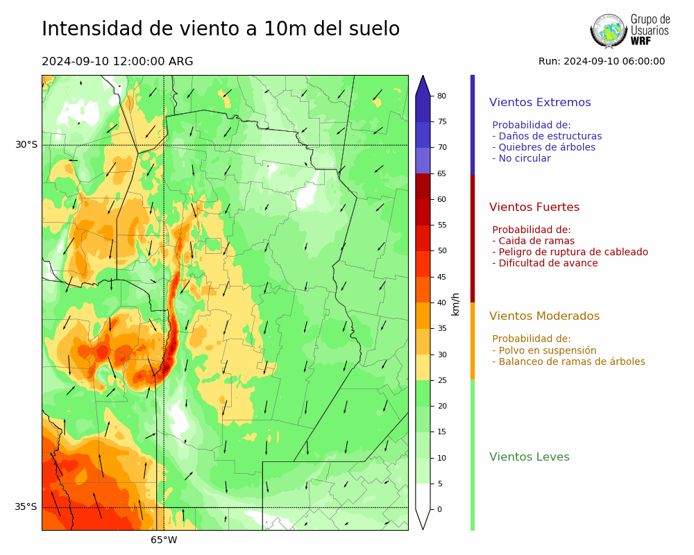 • Intensidad máxima: 26.79 km/h (10/09/2024 22hs.)