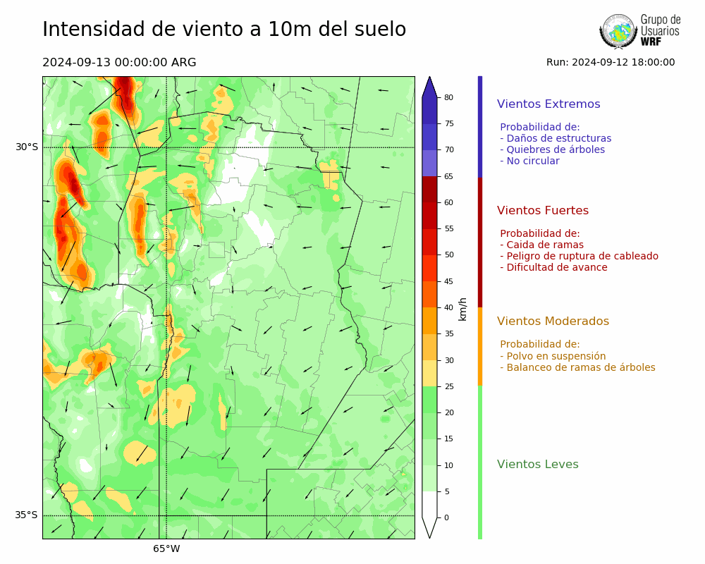 • Intensidad máxima: 19.63 km/h (13/09/2024 01hs.)