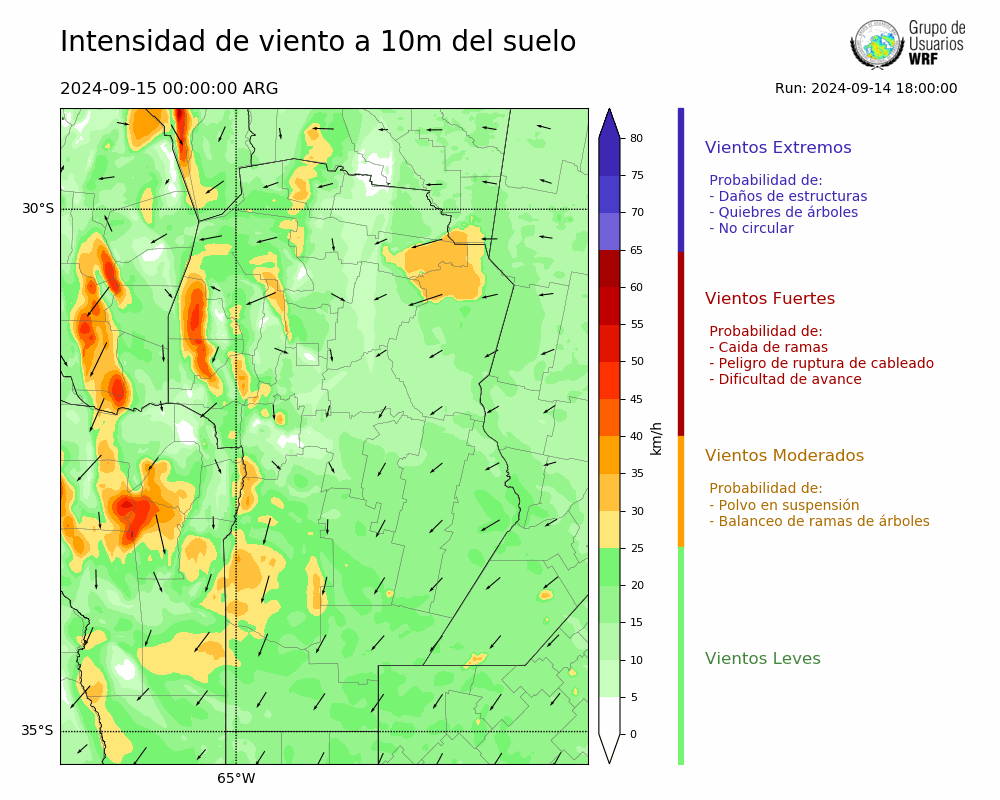 • Intensidad máxima: 31.67 km/h (15/09/2024 09hs.)