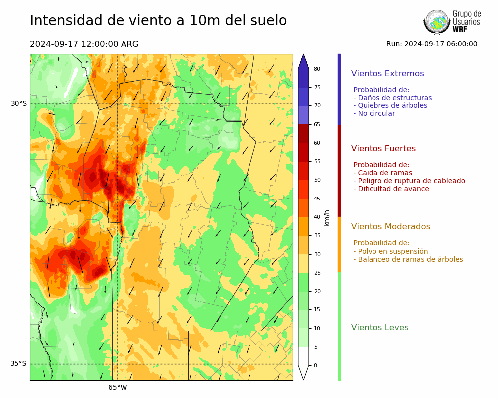 • Intensidad máxima: 35.93 km/h (17/09/2024 17hs.)