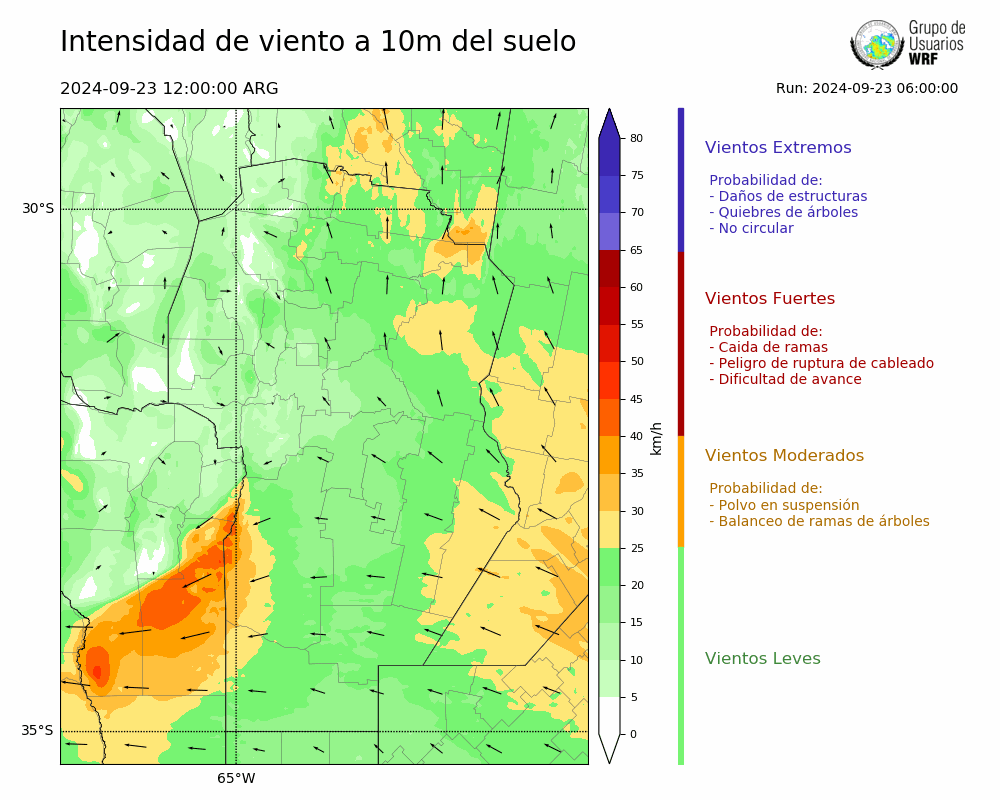 • Intensidad máxima: 20.47 km/h (23/09/2024 18hs.)