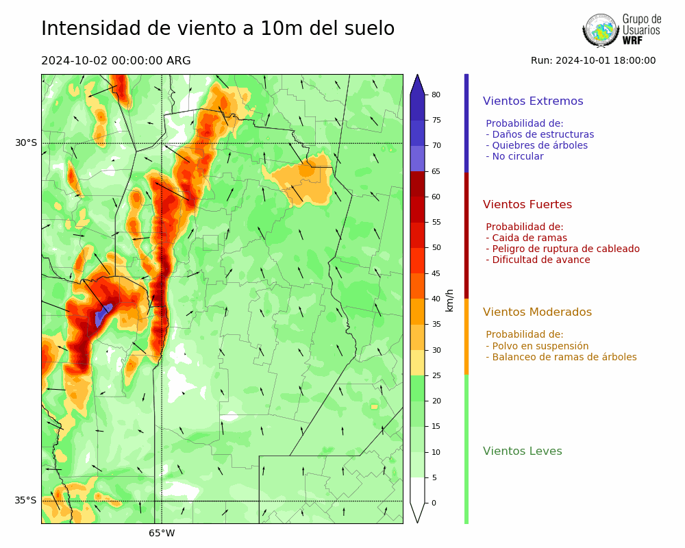 • Intensidad máxima: 18.21 km/h (02/10/2024 00hs.)