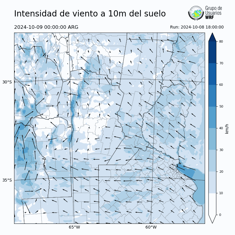 • Intensidad máxima: 10.77 km/h (09/10/2024 06hs.)