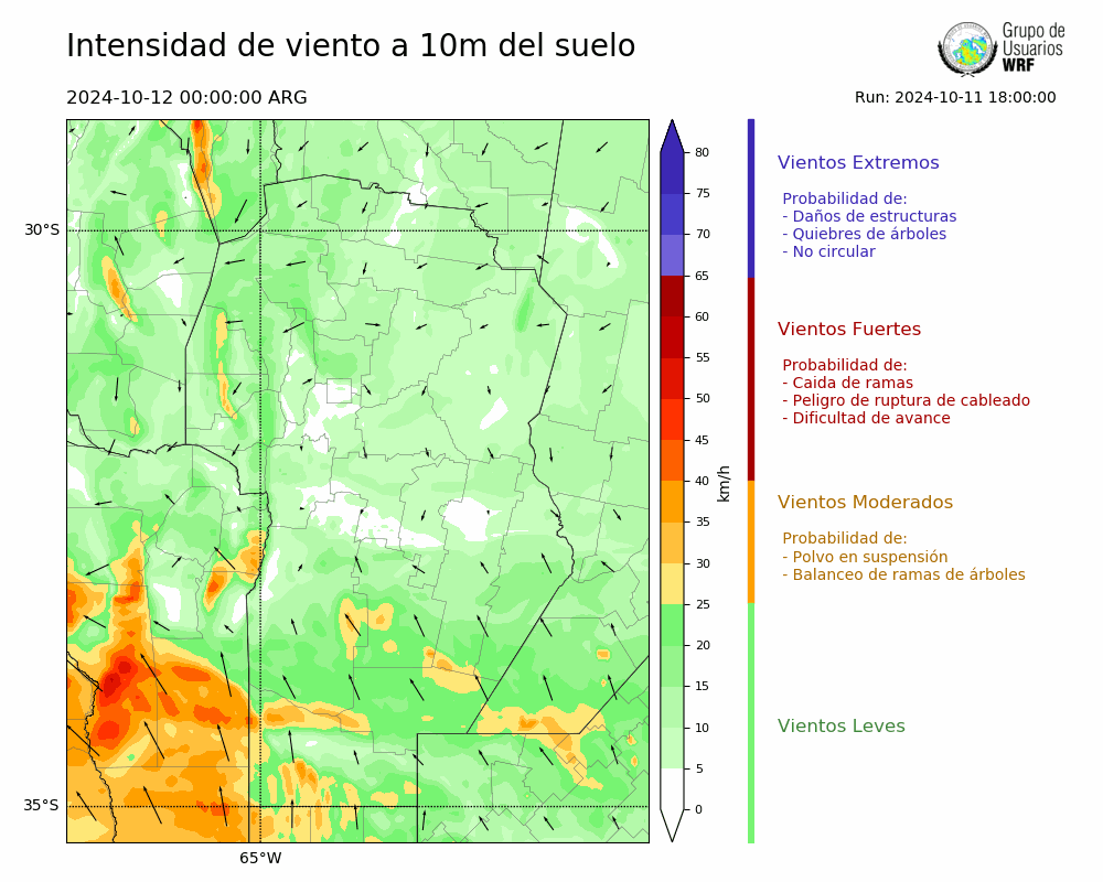 • Intensidad máxima: 27.88 km/h (12/10/2024 05hs.)