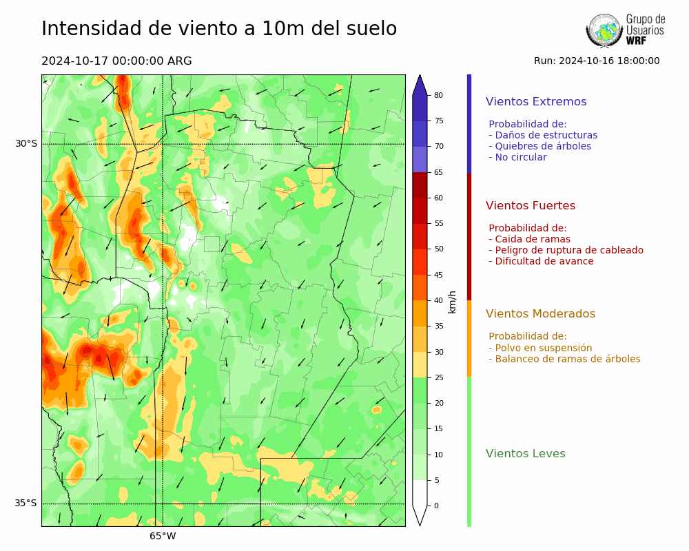 • Intensidad máxima: 40.72 km/h (17/10/2024 10hs.)
