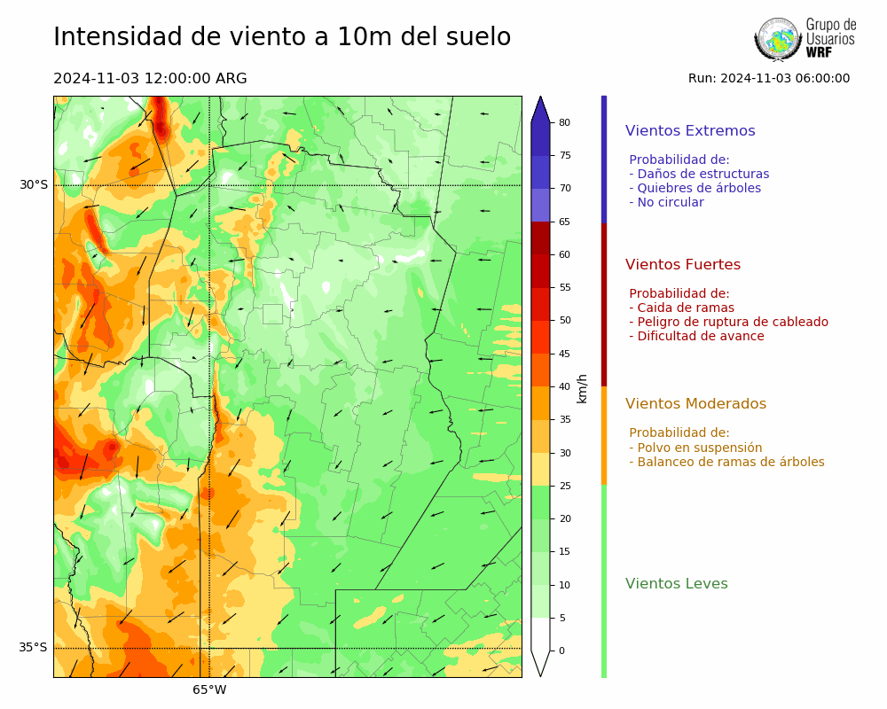 • Intensidad máxima: 14.61 km/h (03/11/2024 17hs.)