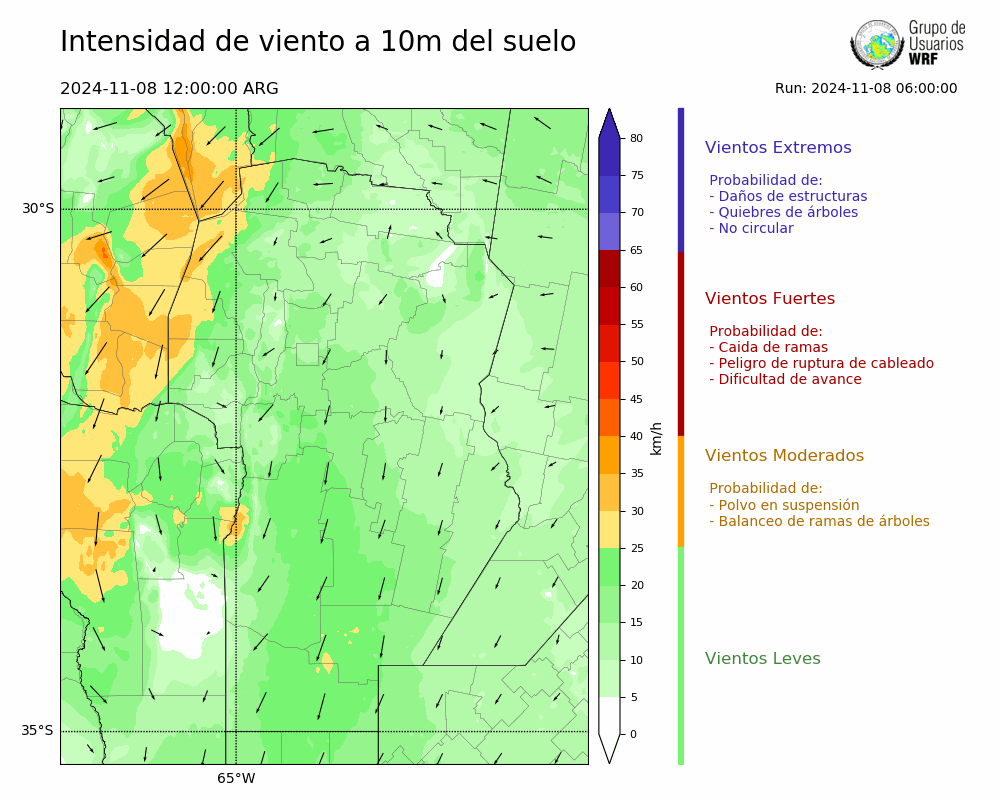 • Intensidad máxima: 20.66 km/h (08/11/2024 19hs.)