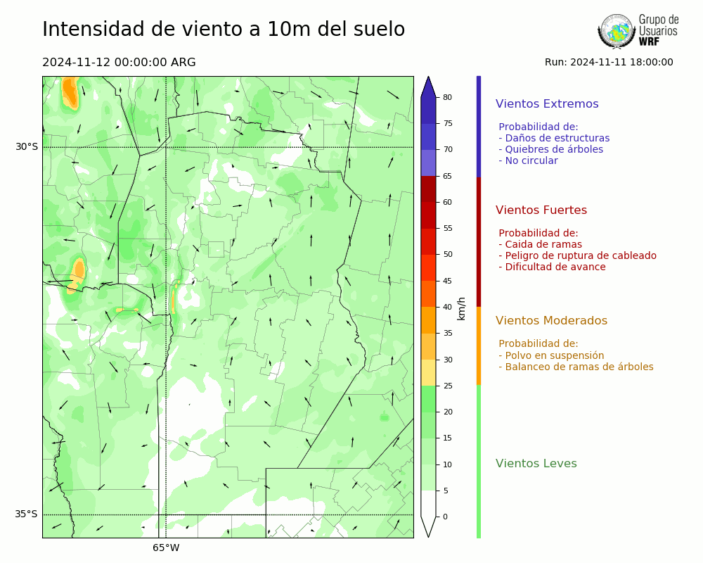• Intensidad máxima: 12.99 km/h (12/11/2024 11hs.)