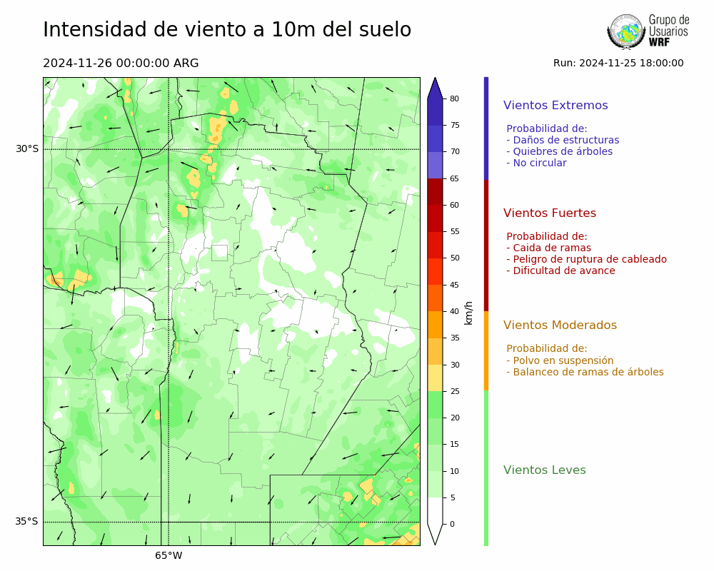 • Intensidad máxima: 9.33 km/h (26/11/2024 11hs.)