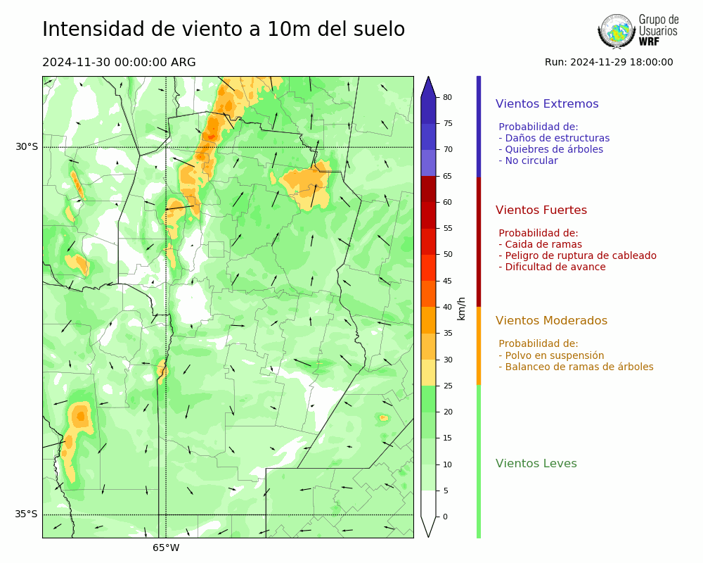• Intensidad máxima: 12.68 km/h (30/11/2024 10hs.)