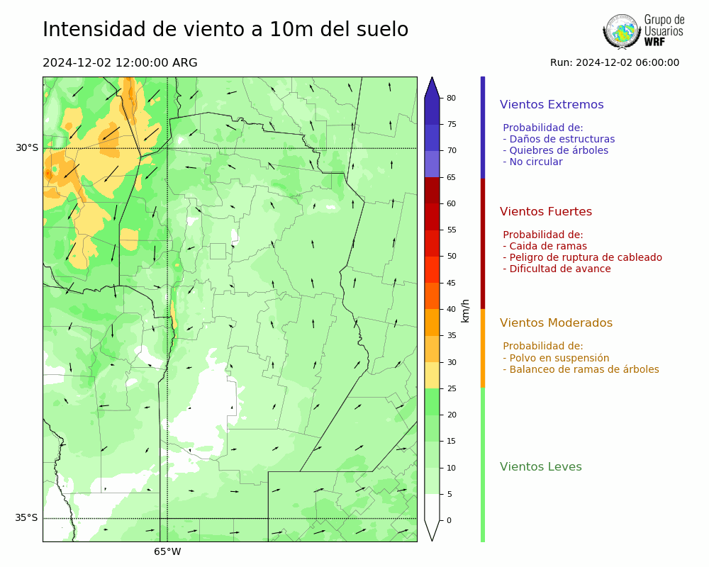 • Intensidad máxima: 17.94 km/h (02/12/2024 16hs.)