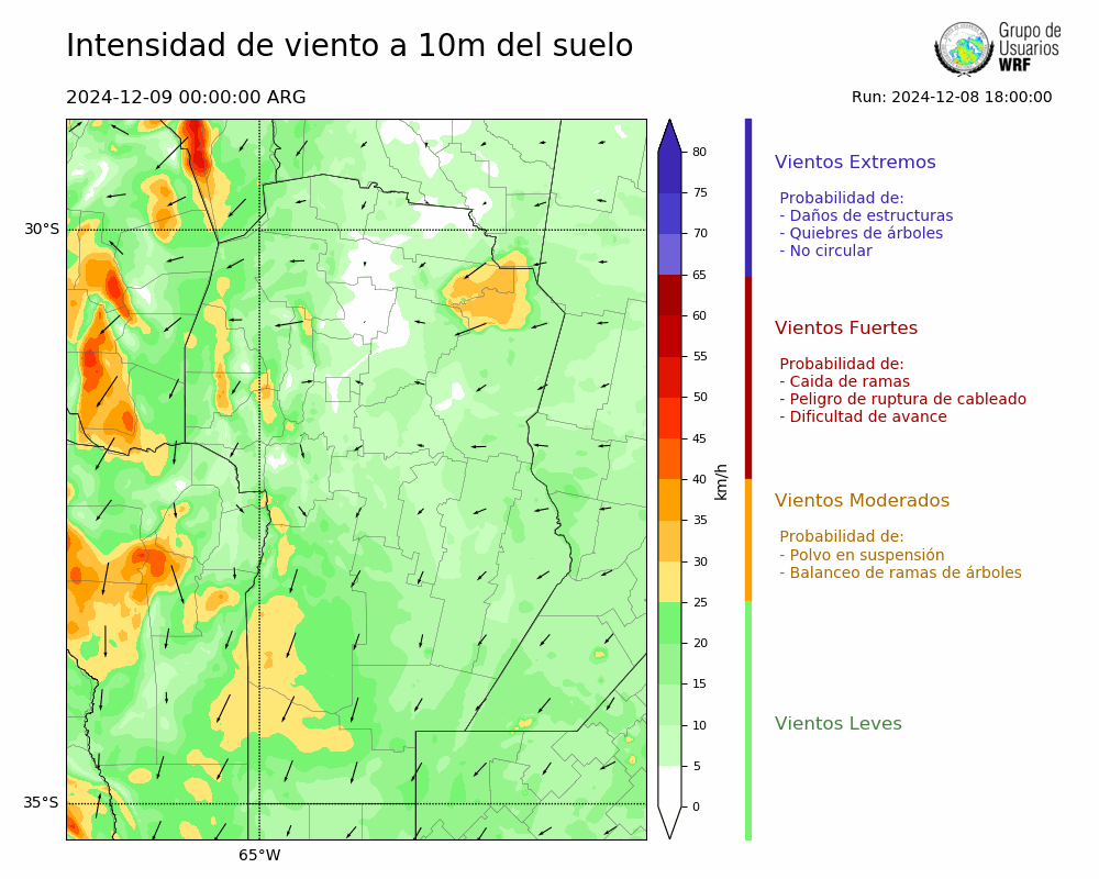 • Intensidad máxima: 10.60 km/h (10/12/2024 22hs.)