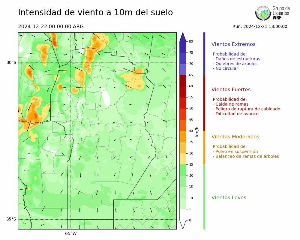 • Intensidad máxima: 17.00 km/h (22/12/2024 11hs.)