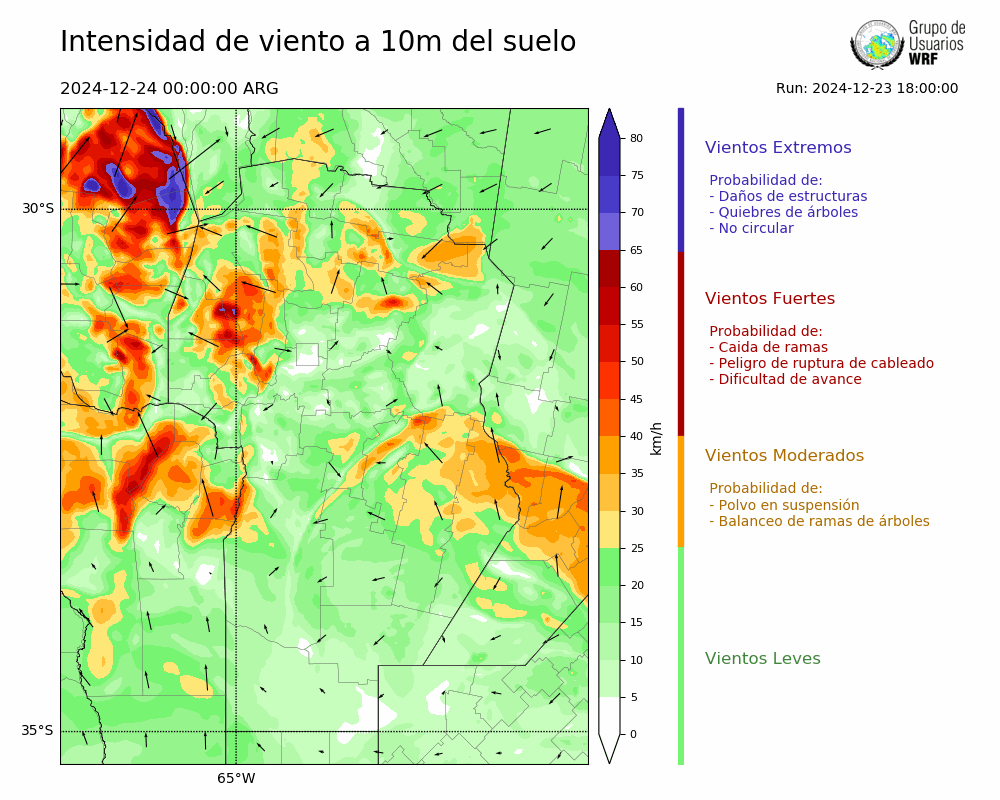 • Intensidad máxima: 13.90 km/h (24/12/2024 02hs.)