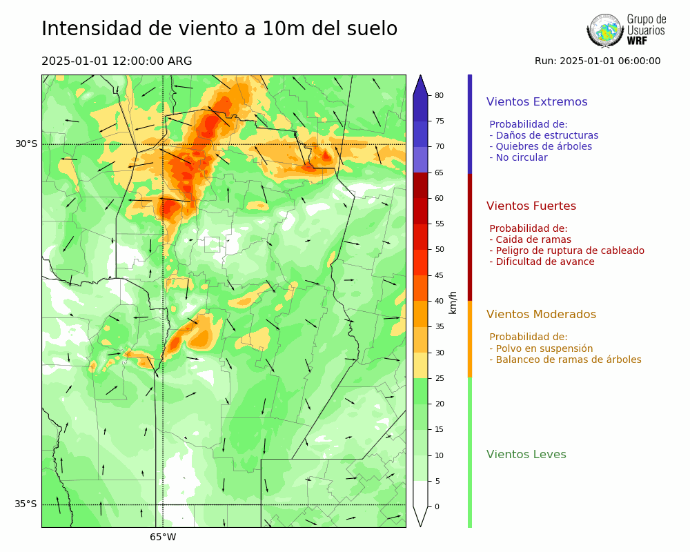 • Intensidad máxima: 12.79 km/h (01/01/2025 16hs.)