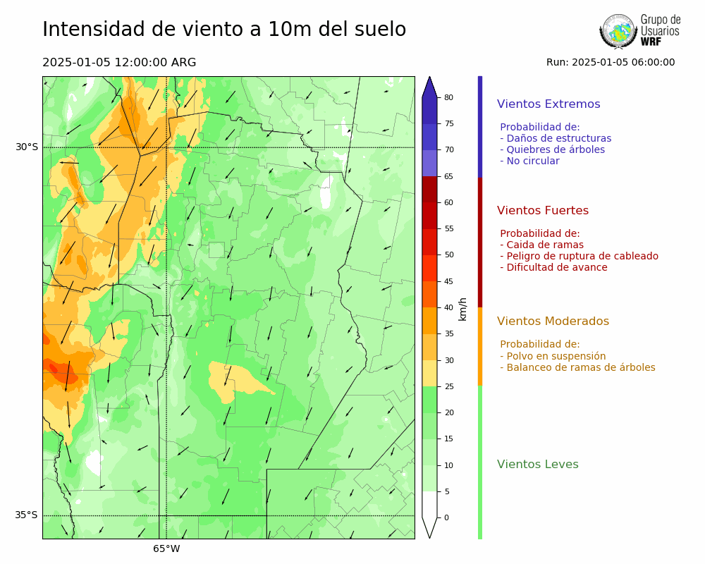 • Intensidad máxima: 27.14 km/h (05/01/2025 19hs.)
