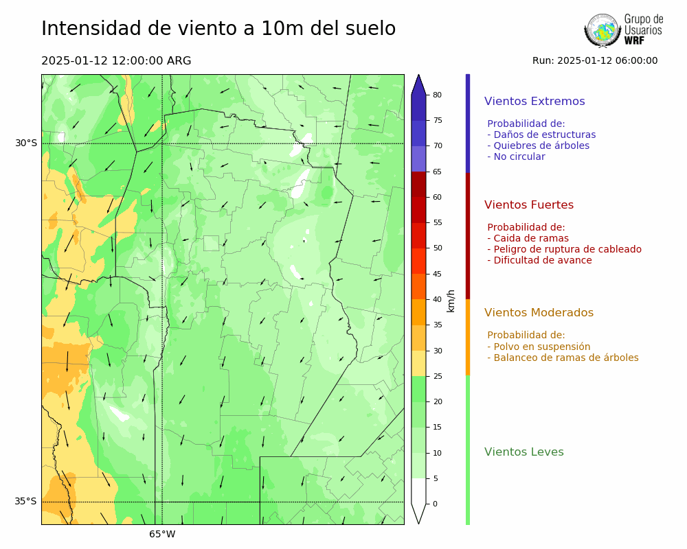 • Intensidad máxima: 20.41 km/h (12/01/2025 20hs.)