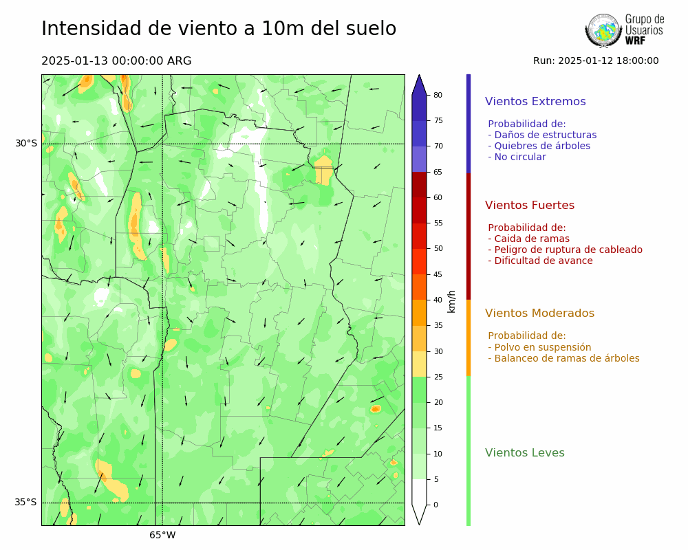 • Intensidad máxima: 12.75 km/h (13/01/2025 10hs.)