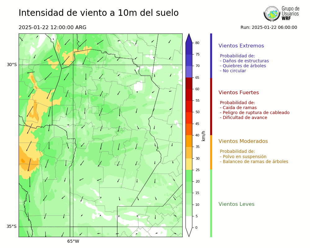 • Intensidad máxima: 17.26 km/h (22/01/2025 18hs.)
