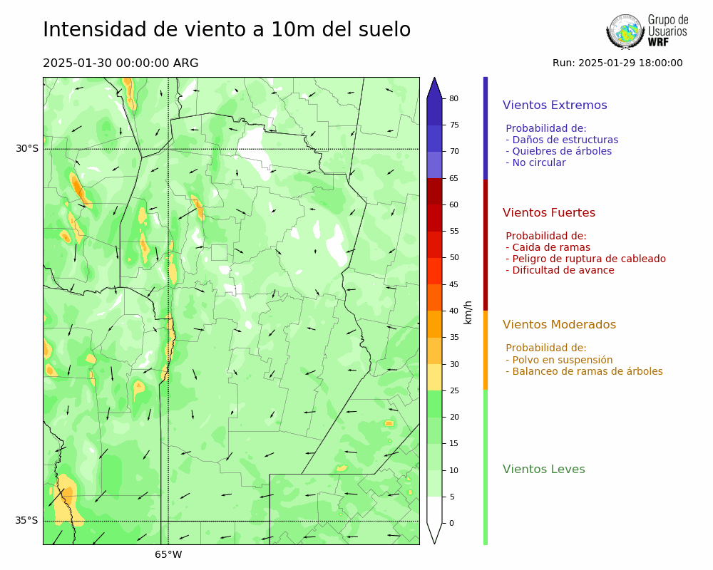 • Intensidad máxima: 18.07 km/h (30/01/2025 00hs.)