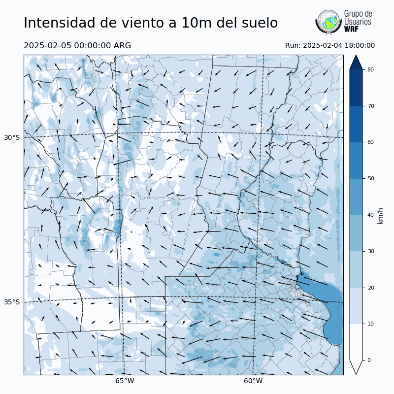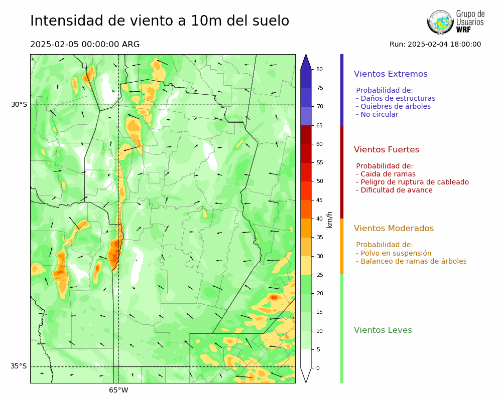 • Intensidad máxima: 18.43 km/h (05/02/2025 11hs.)