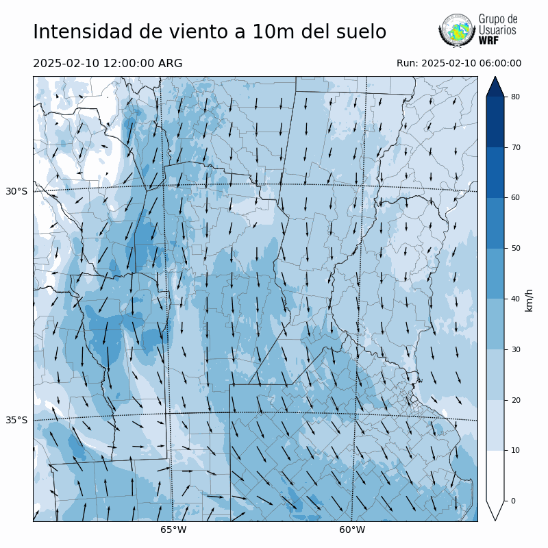 • Intensidad máxima: 22.13 km/h (10/02/2025 12hs.)