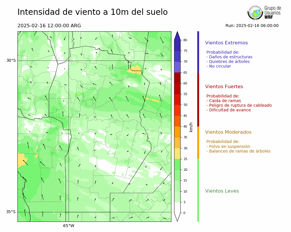 • Intensidad máxima: 18.70 km/h (16/02/2025 17hs.)