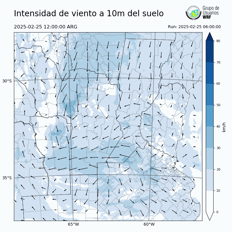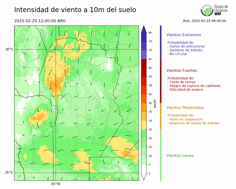 • Intensidad máxima: 32.49 km/h (25/02/2025 15hs.)