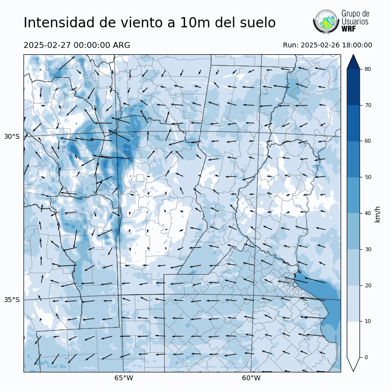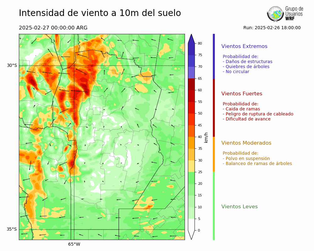 • Intensidad máxima: 30.36 km/h (27/02/2025 05hs.)