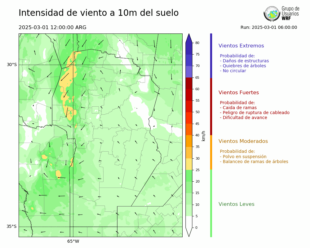 • Intensidad máxima: 18.69 km/h (03/03/2025 09hs.)