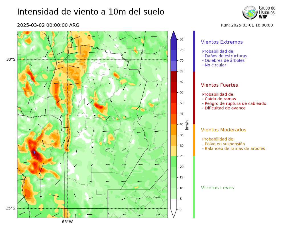 • Intensidad máxima: 27.47 km/h (02/03/2025 03hs.)
