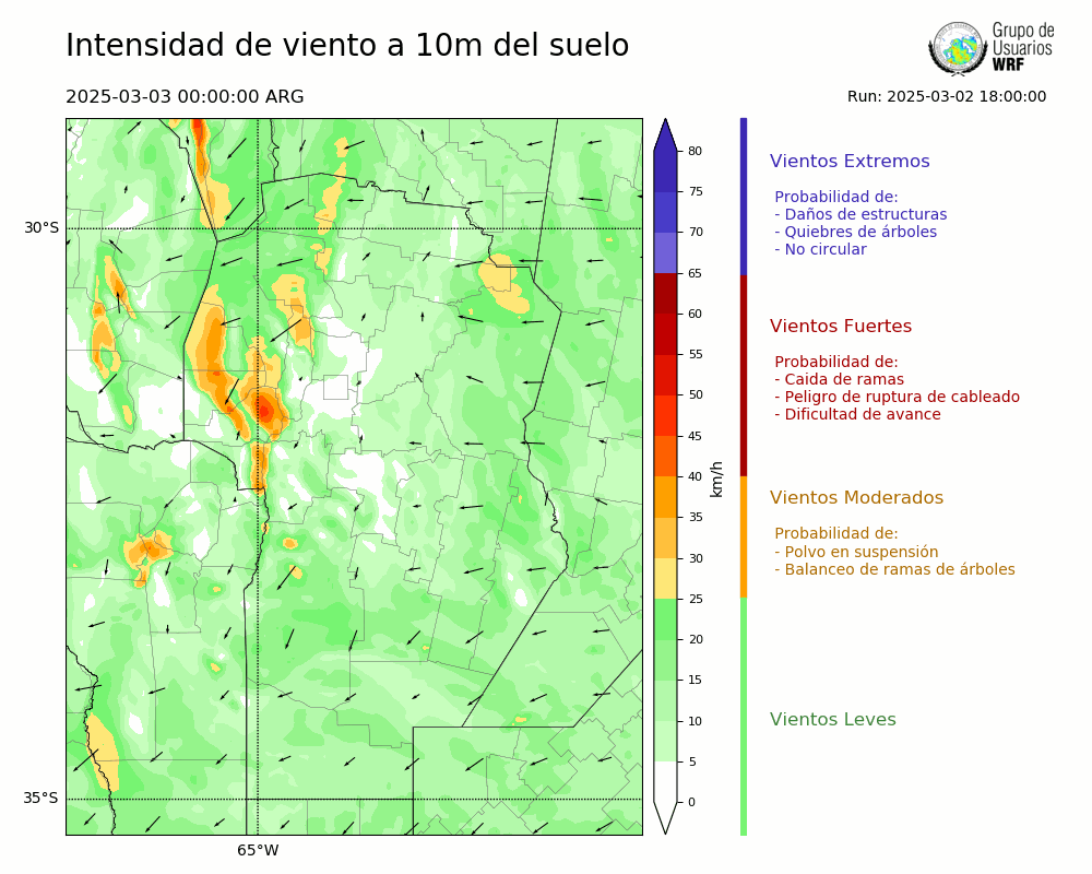 • Intensidad máxima: 14.12 km/h (05/03/2025 02hs.)