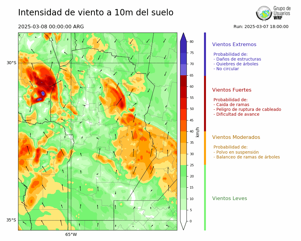 • Intensidad máxima: 33.99 km/h (08/03/2025 08hs.)