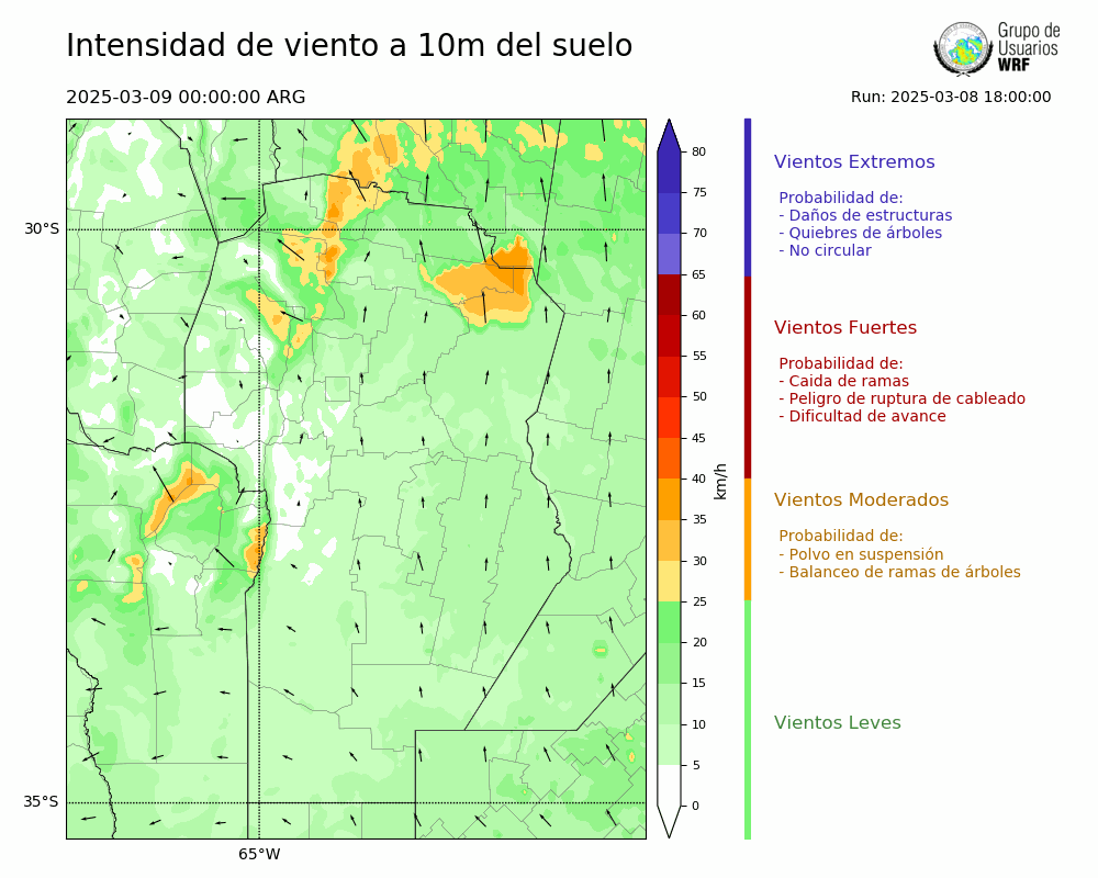 • Intensidad máxima: 10.56 km/h (09/03/2025 22hs.)