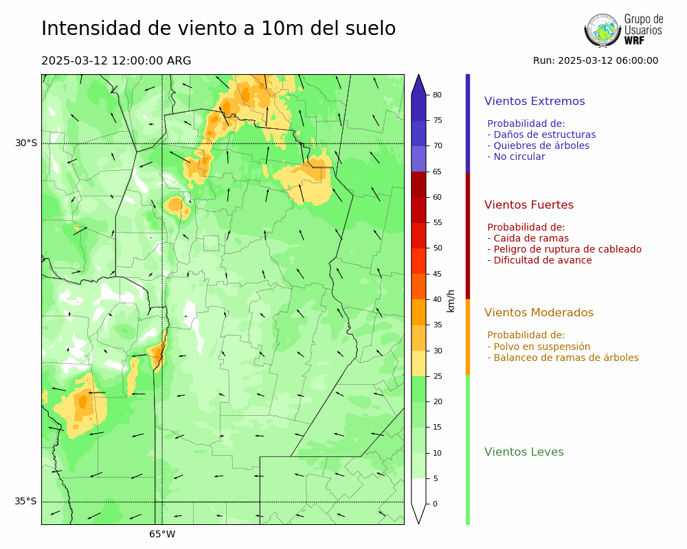 • Intensidad máxima: 13.75 km/h (12/03/2025 16hs.)